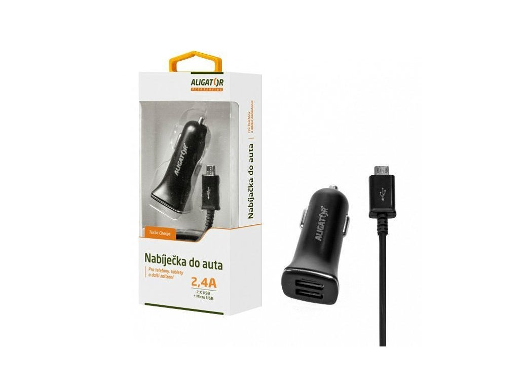 Adaptér CL - ALIGATOR micro USB 2,4A s 2xUSB výstupem černá