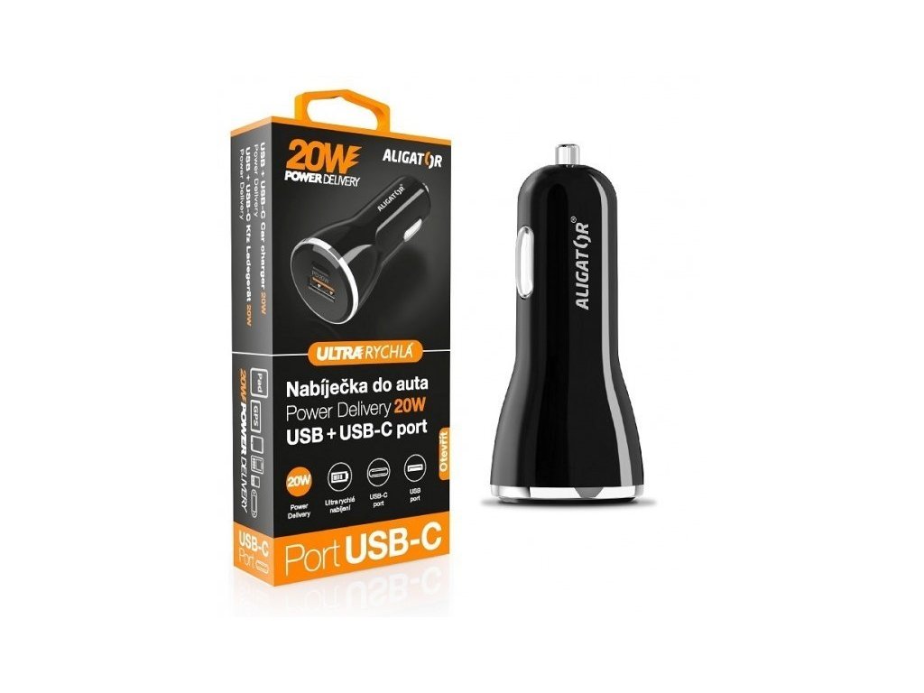 Adaptér CL - ALIGATOR Power Delivery 20W, USB-C a USB výstupem