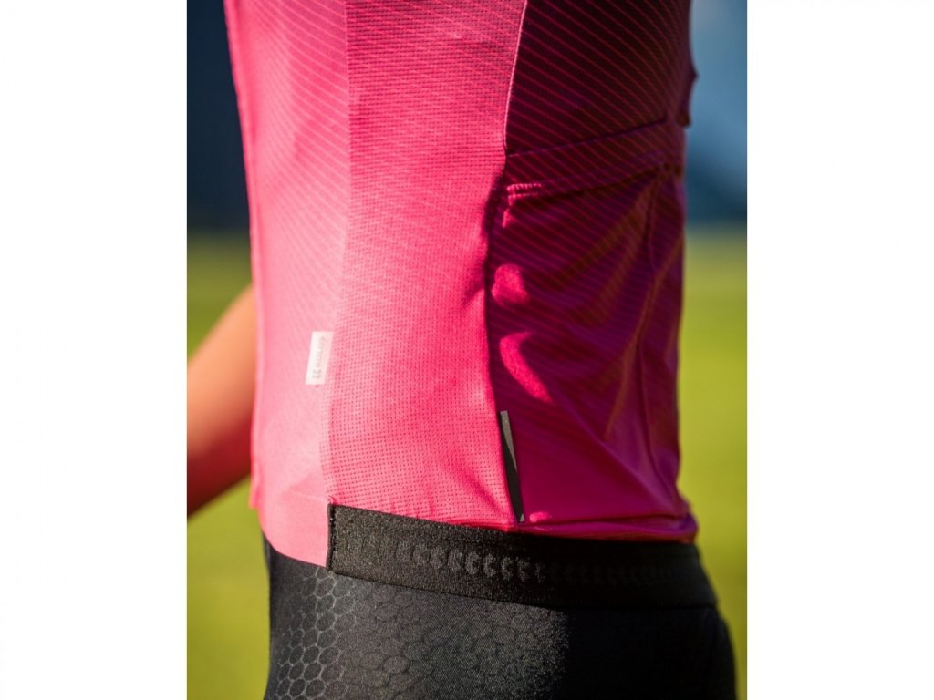 Dámský vysoce technicky propracovaný cyklistický dres s krátkým rukávem a výrazným reflexním ošetřením.
