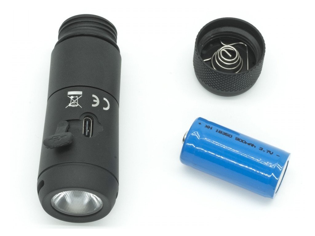 - baterie LI-ion typ 18350 3,7 V / 1100 mAh s vestavěnou PCB ochranou